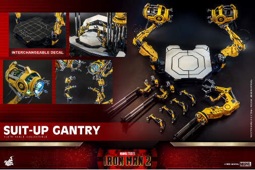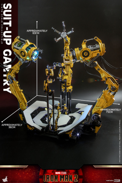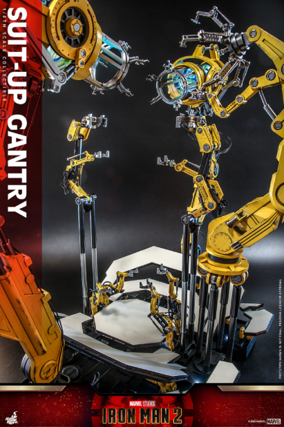 There is a new work on the classic Iron Man dressing table!! "Iron Man 2" Tony came to the center of the venue wearing a steel suit, and the stage immediately began to rotate and deform with the change of perspective. The yellow mechanical arms stretched out in sequence, and a set of smooth and rapid The Dress Up Show…. That's right! International toy collection brand Hot Toys launches a 1/4 scale Iron Man "Dressing Station" in the new year!!!